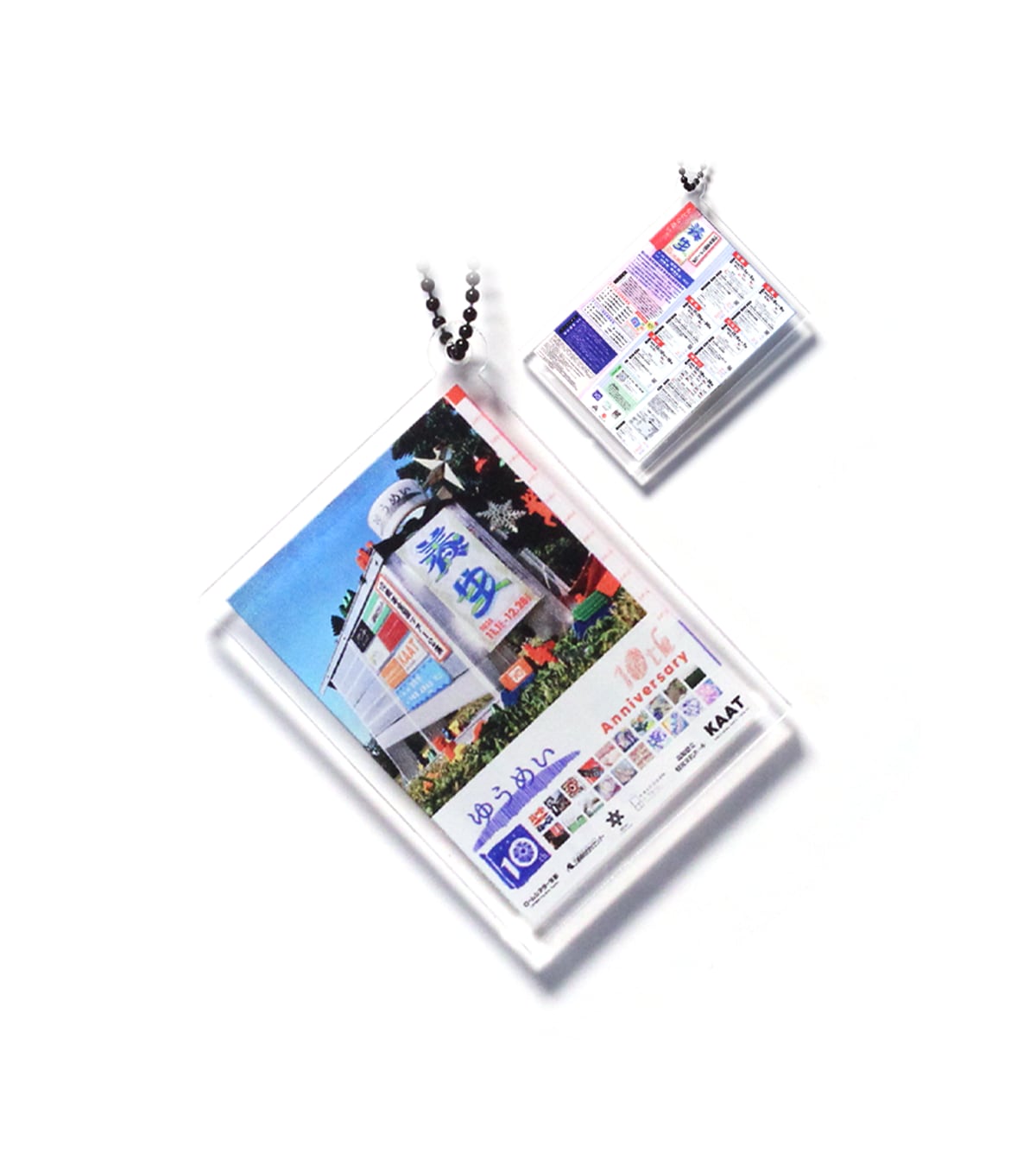 公演チラシの両面アクリルキーホルダーです。